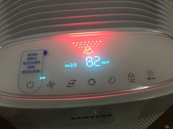 剛打開(kāi)機(jī)器顯示室內(nèi)的PM2.5指數(shù)為82ug/m3,看來(lái)空氣不是很好。