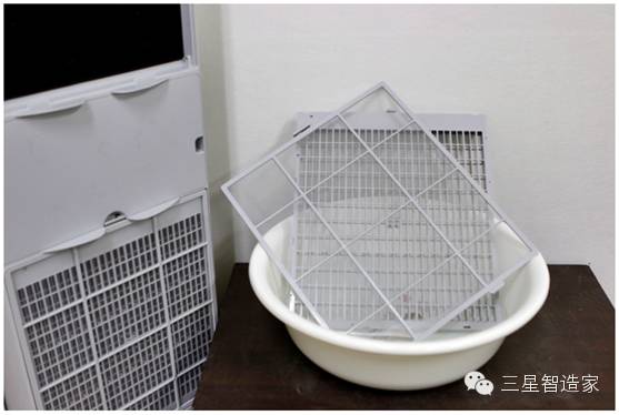 順利取出濾網(wǎng)后,就要開始清理濾網(wǎng)了吧?清理前置濾網(wǎng)時(shí),先用吸塵器清理顆粒較大的灰塵,然后用溫水稀釋中性洗劑輕輕擦洗。清理靜電濾網(wǎng)時(shí),同樣在稀釋了中性洗劑的溫水中浸泡30分鐘后洗刷干凈。