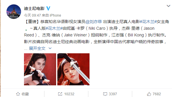 劉亦菲加冕“迪士尼公主” 或?qū)⒊蔀橄乱粋(gè)章子怡? 迪斯尼經(jīng)典動(dòng)畫片《花木蘭》改編的真人版電影,女主角人選揭曉,由劉亦菲勝出。成為迪斯尼公主片的女主角是一項(xiàng)殊榮,從網(wǎng)路文學(xué)大IP女主角到迪斯尼公主的“神仙姐姐”,彷佛經(jīng)歷真正的“加... 劉亦菲出演迪士尼花木蘭男主是誰 男主會(huì)是宋承憲、吳京嗎 劉亦菲確定加入迪士尼經(jīng)典動(dòng)畫《花木蘭》的消息已經(jīng)眾人皆知了,國(guó)人都很驕傲。女主實(shí)錘了,男主還不知道是誰,會(huì)是宋承憲或是吳京嗎?... 劉亦菲將演真人版花木蘭 卻連“迪士尼”都拼不對(duì) \u00A0 尷尬! 近日,“神仙姐姐”劉亦菲可謂話題滿滿,先是主演的新電影《二代妖精》發(fā)布高能預(yù)告,接著劉亦菲出席2017時(shí)尚之夜年度盛典,與好姐妹唐嫣同框互動(dòng)。... 迪士尼中國(guó)花木蘭官宣照曝光 劉亦菲持劍英氣十足 在外媒曝出劉亦菲出演真人電影《花木蘭》后,迪士尼中國(guó)方面一直未有回應(yīng)。12月1日,迪士尼電影通過官方微博發(fā)話,除了恭喜劉亦菲獲選成為《花木蘭》女主外,更曝出更為詳細(xì)的制作陣容,華語... 迪士尼《花木蘭》真人電影什么時(shí)候上映 花木蘭花落中國(guó)演員劉亦菲期待嗎 迪士尼《花木蘭》真人電影什么時(shí)候上映花木蘭花落中國(guó)演員劉亦菲期待嗎??大家跟石家莊傳媒網(wǎng)小編一起看看,告訴你們吧。在外媒曝出劉亦菲出演真人電影《花木蘭》后,迪士尼中國(guó)方面一直未有...