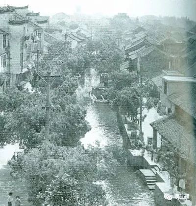 黎里市河(攝于上世紀(jì)90年代)東西全長三里,兩岸街市人家,尤多廊棚建筑
