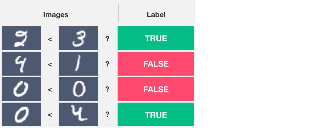 作者展示了?ILP 如何處理歸納任務。給定一對表示數字的圖像,其任務是輸出標簽(0 或 1)指出左圖的數字是否比右圖的數字小。解決這個問題需要上述的兩種思維:直觀感知思維將圖像識別為特定數字的表征,概念性思維理解完全一般性的「小于」關系。
