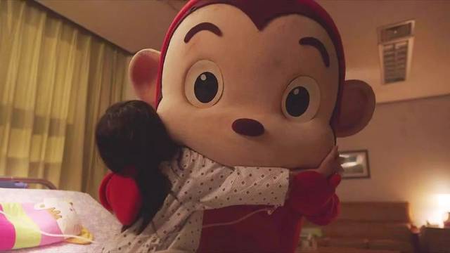 ▲ 電影《素媛》中,素媛的爸爸害怕自己會引發(fā)素媛黑暗的記憶,便躲在玩偶服中保護她,給她打氣