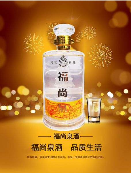 這款新品是保定福尚泉白酒制造有限公司與當?shù)丶w企業(yè)聯(lián)合推出的,一款好的白酒都擁有雄厚的歷史背景。例如我國極具盛名的杜康與杏花村,杜康酒是中國歷史名酒,歷代墨客文人與它結(jié)下不解之緣,常以詩詠酒,以酒釀詩,詩增酒意,酒助詩興魏武帝曹操賦詩:“慨當以慷,憂思難忘;何以解憂?惟有杜康!倍踊ù寰埔彩窃跉v史上具有很高地位的一款名酒。
