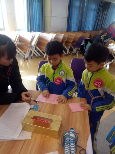 本次闖關的地點設在教室、會議室等處,教室門口張貼本考室的闖關主題海報,校園里彌漫著新鮮、快樂的氣息。本次闖關活動由專業(yè)教師做考官,家長志愿者進行學生的組織,并協(xié)助考官做好成績的記錄與過關標志的粘貼,這樣的分工與合作,讓本次活動有序順利地進行。
