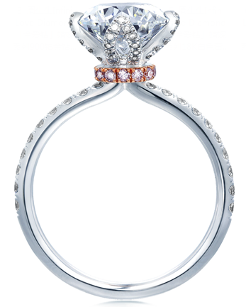 Infini Love Diamond「全愛鉆」婚嫁系列鉑金鉆石及18K粉紅鉆石戒指,點(diǎn)亮了圣誕夜的浪漫求婚。鉆戒采用充滿創(chuàng)意的立體鑲鉆花瓣為爪托,多顆粉紅鉆石巧妙形成一圈優(yōu)雅靈動(dòng)的光暈,簇?fù)碇鴨晤w主鉆并自然襯托出主鉆的華麗,詮釋出Infini Love Diamond「全愛鉆」0.03%1,全球僅有0.03%的天然鉆石才能成為周生生Infini Love Diamond「全愛鉆」。