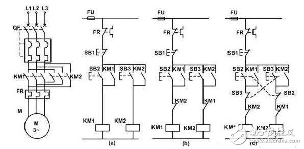 在使用圖1或圖2c的電路時,要注意使用場所,在一些電動機正轉(zhuǎn)過程中,不能直接進行反轉(zhuǎn)的場合下,此電路則不適用,以免發(fā)生危險。
