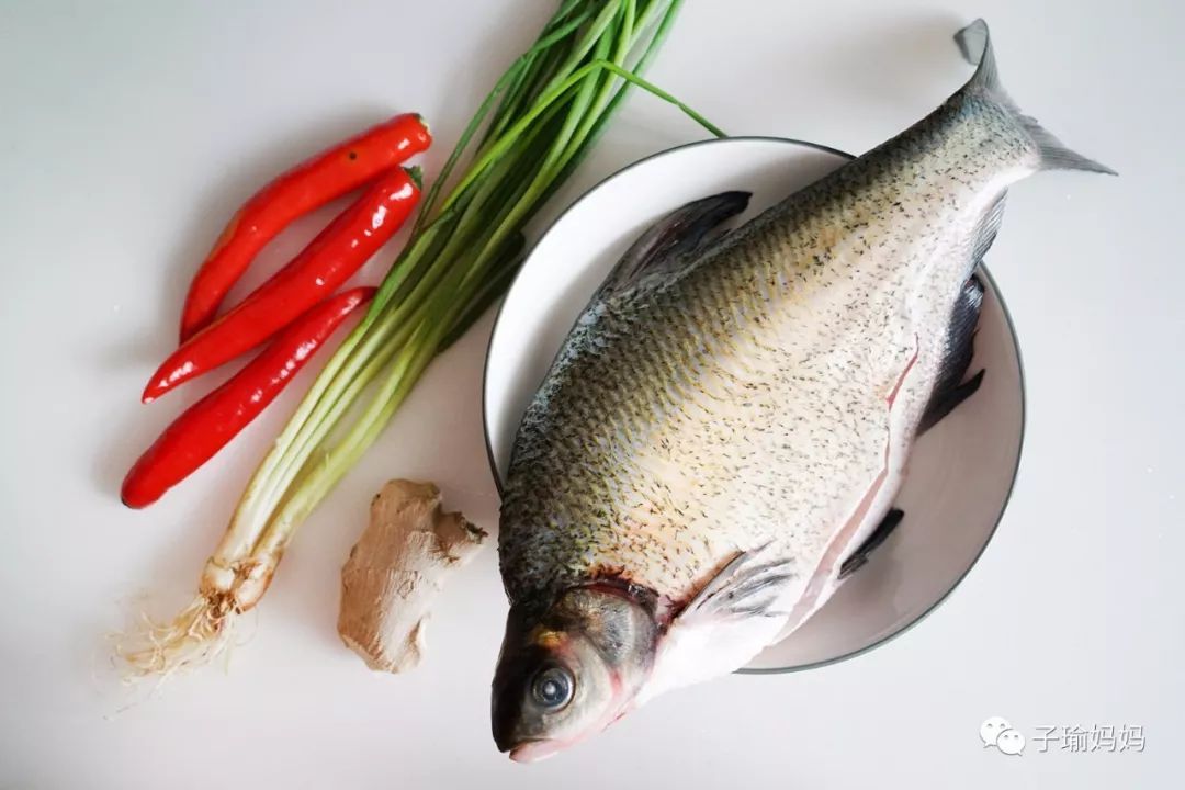 鳊魚(yú)1條(約500克),蔥幾根,姜幾篇,紅辣椒幾根