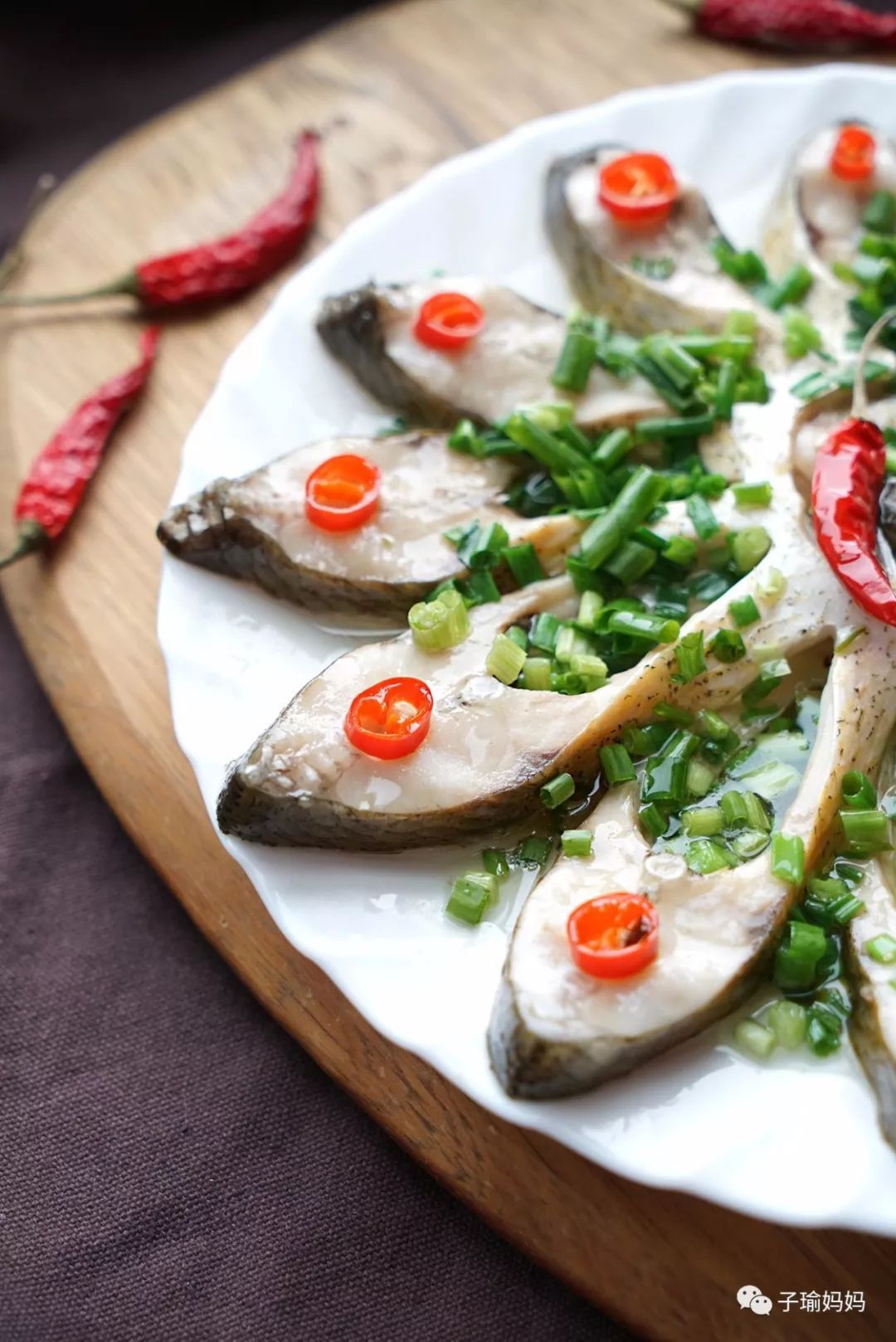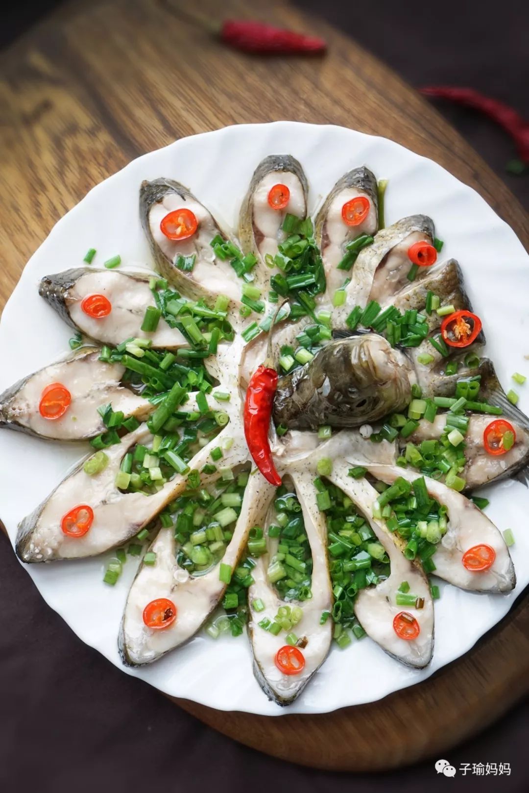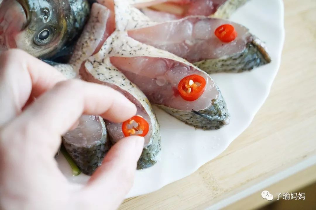 8、把辣椒圈擺在魚(yú)上;