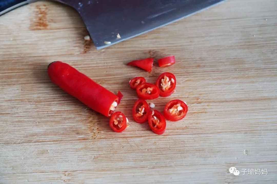 7、切點(diǎn)辣椒圈,小點(diǎn)的好看;