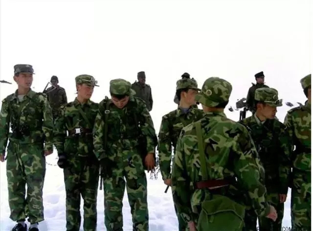 從圖上可以看出,這是幾名解放軍軍人似乎正在兩國(guó)邊界的中國(guó)一側(cè)巡邏。照片中,大雪皚皚,可解放軍身上的衣服比較單薄。可能是因?yàn)楹洌瑤酌夥跑娛勘急慌牡绞植逶谘澏道铮_實(shí)顯得形象也不太好。然而問(wèn)題在于,這些士兵身著的是老款87式軍服,由此推斷,這張照片至少也是十多年前拍攝的了。今天的解放軍早已換裝07式軍裝,如果在邊境的雪線以上,則應(yīng)該都裝備了暖和并適合戰(zhàn)術(shù)動(dòng)作的07式冬季作訓(xùn)服和迷彩大衣。