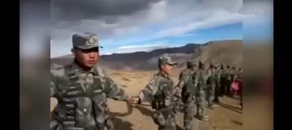 2015年解放軍在邊境線面朝印軍拉起人墻。