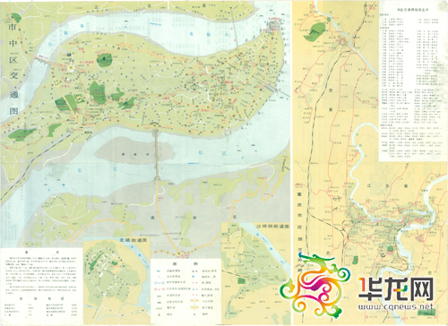 1988年《重慶市交通圖》上的重慶較7年前有了大變化。 重慶地理信息中心供圖