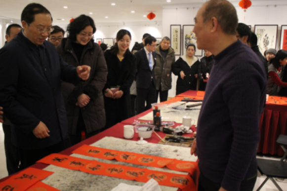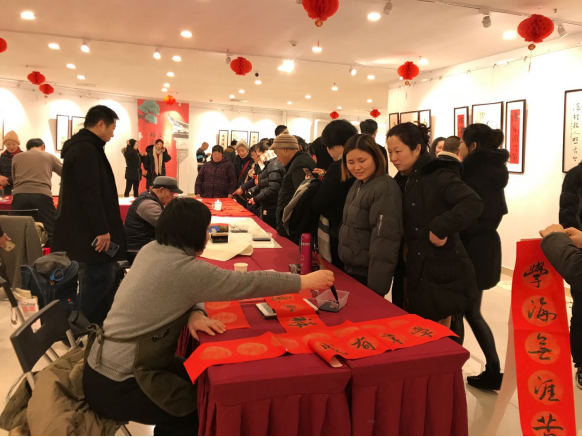 來自市文聯(lián)的老師們也特意為本次活動開幕帶來了新春送祝福送對聯(lián)活動。老師們現(xiàn)場揮毫潑墨,恣情揮灑,提筆有力,落筆有神,單憑簡單、豪爽的一毫揮墨,勾勒了分明的棱角,一筆一劃都浸潤了精妙的靈魂。一幅幅作品或蒼勁有力,或雋永飄逸,或清秀雅致,或剛健挺拔,或規(guī)范入體,各具特色!現(xiàn)場洋溢著筆墨之香,文雅之風(fēng)。