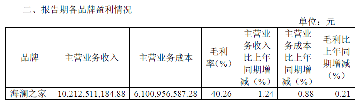 海瀾之家2017年前三季度財報顯示,公司主營業(yè)務(wù)收入為102.13億元,同比增長1.24%;公司主營業(yè)務(wù)成本為61億元,同比增長0.88%;海瀾之家品牌的毛利率為40.26%,同比增長0.21%。