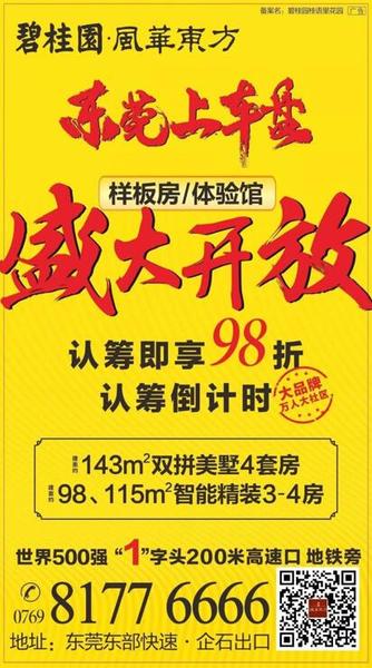 “1”字頭東莞上車盤碧桂園風(fēng)華東方已于10月14日開放樣板房,98㎡、115㎡智能裝修洋房及143㎡創(chuàng)意美墅,歡迎品鑒。