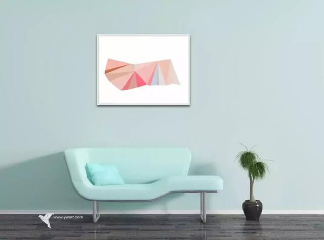 基于三角形創(chuàng)作畫面將現(xiàn)實(shí)世界進(jìn)行多維的解構(gòu),像抽象化了的真實(shí)場景,給清新自然的臥室?guī)硪曈X上的質(zhì)感。