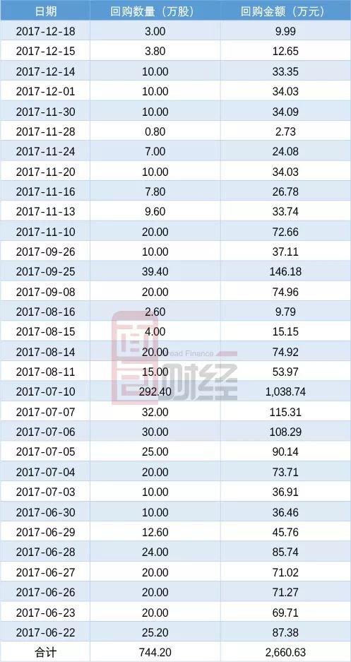 2017年下半年,佐丹奴國際合計回購了744.2萬股,回購金額約0.27億元。