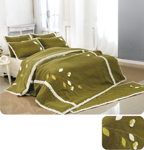 面料為純天然水洗面料。色調(diào)采用帥氣的軍綠色搭配素凈的白色花邊,一深一淺的顏色搭配顯出濃淡總相宜的視覺(jué)享受。搭配枝葉的圖案使整套床品更添一絲俏皮、可愛(ài),也緩沖了視覺(jué)上單調(diào)的感覺(jué)。