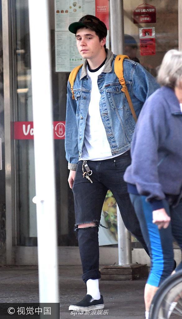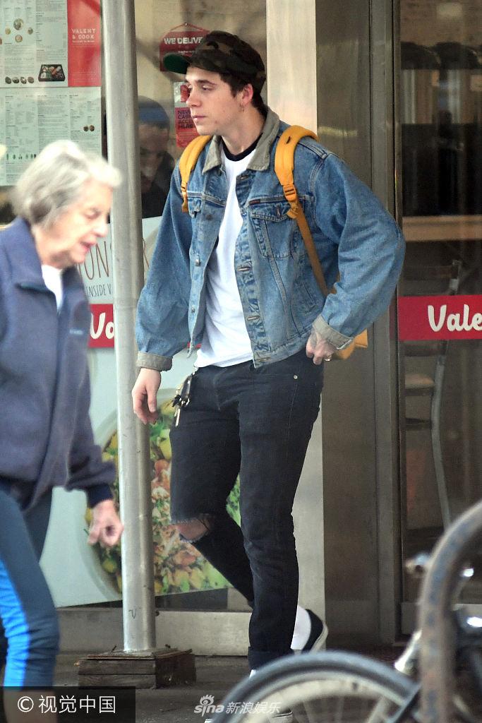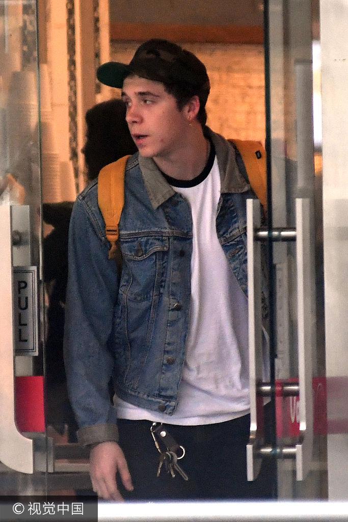 新浪娛樂訊 當?shù)貢r間2017年11月2日,紐約,布魯克林-貝克漢姆( Brooklyn Beckham )吃完早餐去上課,眼皮睜不開似沒睡醒。(視覺中國/圖)