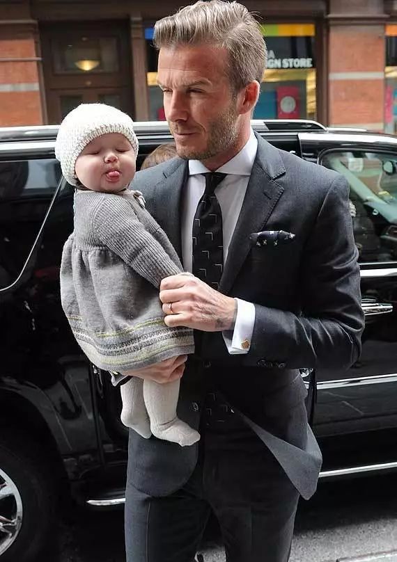 當(dāng)Harper還是個(gè)小肉球的時(shí)候,已經(jīng)被這樣經(jīng)典的表情和裝扮迷住了。而這一臉的“面露不懈”已經(jīng)完全攻破了迷人老男人的心房,因?yàn)閷?shí)在是太可愛(ài),太過(guò)惹人愛(ài)了。