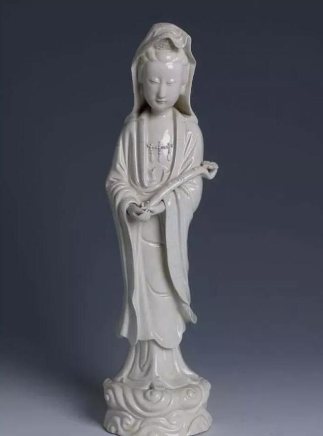 清代漳窯瓷如意觀音立像,它底徑12.0厘米通高45.0厘米、像高38.2厘米,是國(guó)家一級(jí)文物,藏于漳州市博物館