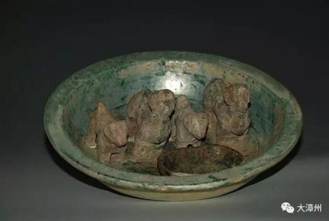 東漢鉛綠釉陶羊圈,它直徑29厘米、通高10.5厘米、盤(pán)高5.6厘米、底徑14厘米,是國(guó)家二級(jí)文物,藏于云霄縣博物館。