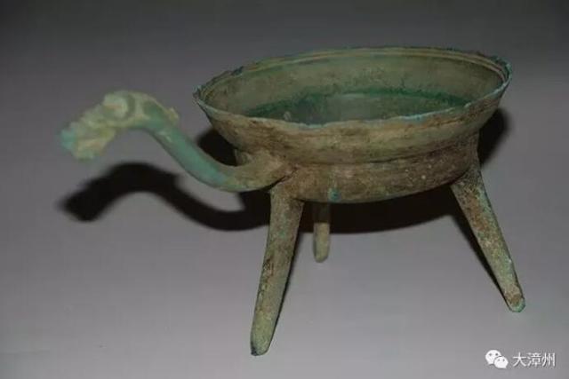 圖為晉朝龍首把三足銅譙斗,它高13.5厘米、口徑13.7厘米、柄長(zhǎng)12.7厘米、足高6.7 厘米,它是國(guó)家三級(jí)文物,藏于云霄縣博物館