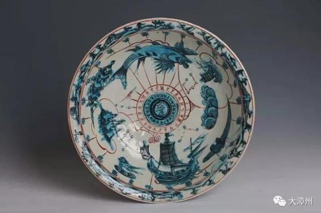 圖為明代漳州窯五彩龍紋羅盤(pán)航海圖瓷盤(pán),它口徑34.2厘米、底徑16厘米、高7.6厘米,是國(guó)家一級(jí)文物,藏于漳州市博物館。