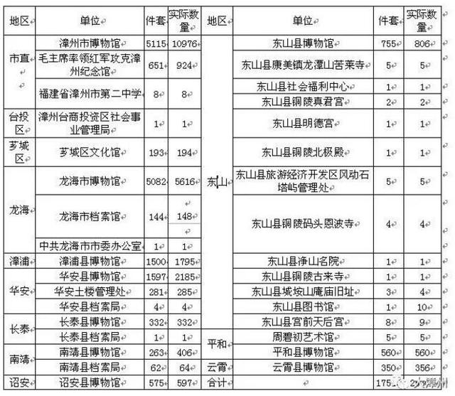 讓小編帶大家看看漳州各地的文物藏品分布量
