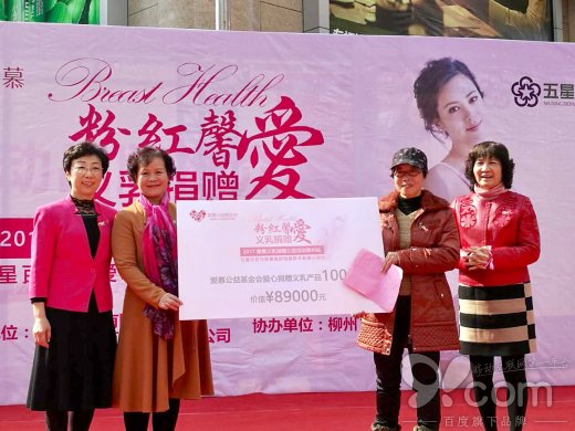 在柳州的公益活動(dòng)也定在柳州市的五星步行街舉行。愛慕公益基金會(huì)的秘書長(zhǎng)沈輝、也與柳州市婦聯(lián)主席衛(wèi)東、柳州五星百貨股份有限公司總經(jīng)理唐小云等人共同出席了活動(dòng)。據(jù)了解,本次活動(dòng)也是愛慕公益基金會(huì)連續(xù)第三年和柳州五星共同舉辦的“粉紅馨愛-義乳捐贈(zèng)”活動(dòng)。