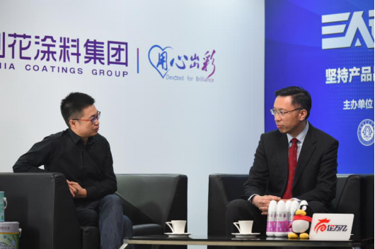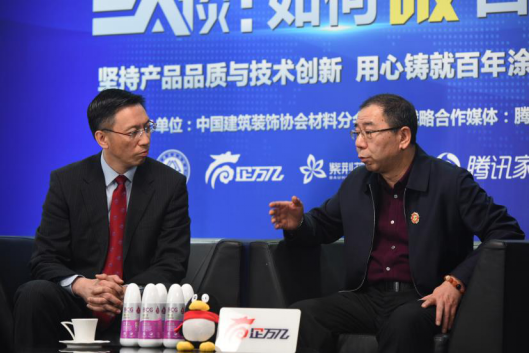 紫荊花涂料集團(tuán)聯(lián)席總裁馮秉光與騰訊家居全國總編張永志交流、探討