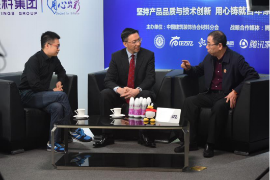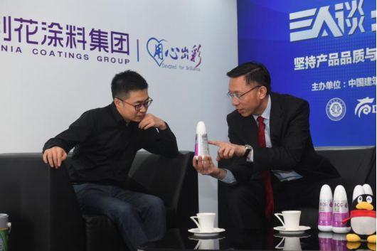 紫荊花涂料集團(tuán)聯(lián)席總裁馮秉光、中國建筑裝飾協(xié)會材料分會秘書長王岳飛及騰訊家居全國總編張永志三人進(jìn)行話題探討