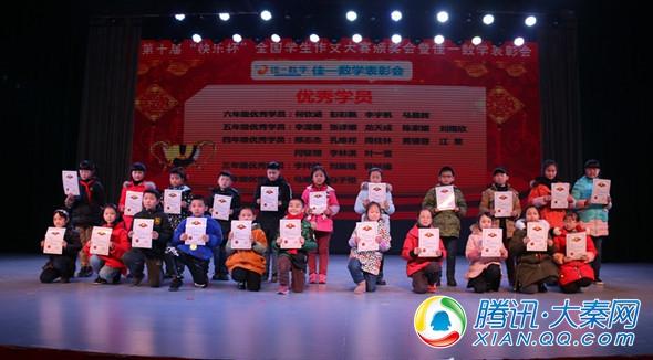 騰訊大秦網(wǎng)漢中頻道訊 1月19日晚,勵(lì)博快樂作文培訓(xùn)學(xué)校在天漢大劇院隆重舉行“第十屆‘快樂杯’全國作文大賽頒獎(jiǎng)會(huì)暨佳一數(shù)學(xué)表彰會(huì)”,表彰在“第十屆‘快樂杯’全國作文大賽中獲得前三等獎(jiǎng)的和特等獎(jiǎng)及佳一數(shù)學(xué)培訓(xùn)學(xué)校優(yōu)秀學(xué)員和進(jìn)步學(xué)員的學(xué)生。
