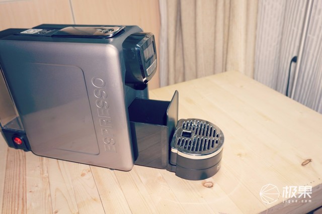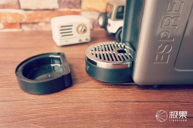 接水盤很有意思,拉出來其實后半部分還是膠囊回收倉,用過一段時間就可以拉出膠囊回收倉,清理掉里面已經(jīng)泡過的膠囊。而接水盤因為咖啡量的不同,我們會選用不同的咖啡杯,MiTALY的設(shè)計者也充分考慮到了這點,這個接水盤也可以拆分,大杯子接咖啡時,就可以去掉一層。