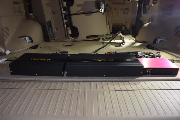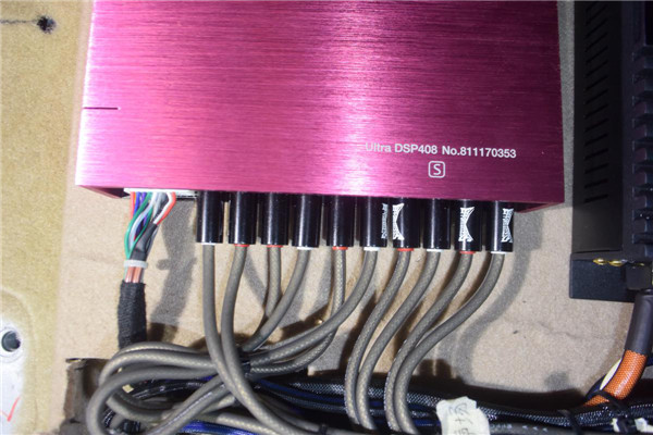為了節(jié)省空間,優(yōu)美聲DA408 DSP音頻處理器和英國(guó)創(chuàng)世紀(jì) G FOUR兩個(gè)功放并排安裝。