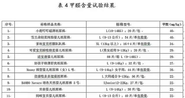 在甲醛含量試驗(yàn)中,標(biāo)稱(chēng)品牌為“小鹿叮叮、雪蘭朵、爹地寶貝、可愛(ài)寶貝、適寶康、好孩子、Moony、倍康、BAMBO Nature、貝親、媽咪寶貝(網(wǎng)購(gòu))”等11件樣品測(cè)出甲醛,且含量均高于20mg/kg(嬰幼兒紡織品A類(lèi)要求≤20mg/kg)。
