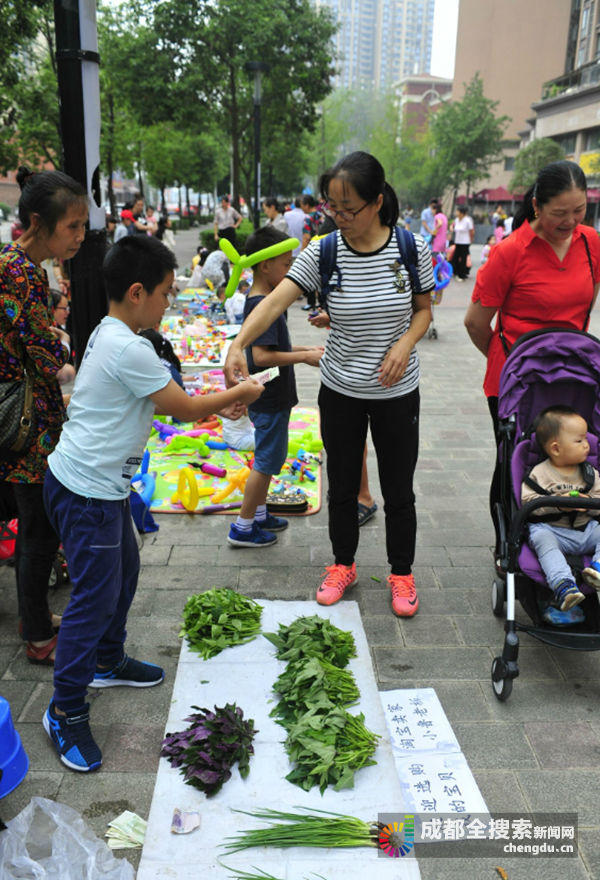 下午3:30,事先報(bào)名的小攤主就早早到場(chǎng),在工作人員的引領(lǐng)下選擇攤位并布置。隨著跳蚤市場(chǎng)的自由交易時(shí)間到來(lái),小朋友快速進(jìn)入角色,叫賣、銷售、攬客。記者看到,本次擺攤活動(dòng)不僅有小朋友喜歡的玩具售賣,還有媽媽們感興趣的農(nóng)產(chǎn)品、新鮮蔬菜,例如健康美味的蜂蜜、紅苕尖兒、莧菜等,且售賣價(jià)格遠(yuǎn)低于市場(chǎng)價(jià),十分實(shí)惠。一位家長(zhǎng)表示:“本來(lái)就是帶娃兒體驗(yàn)擺攤的樂(lè)趣,并不是想賺錢。自家種的蔬菜,就便宜賣啦!”