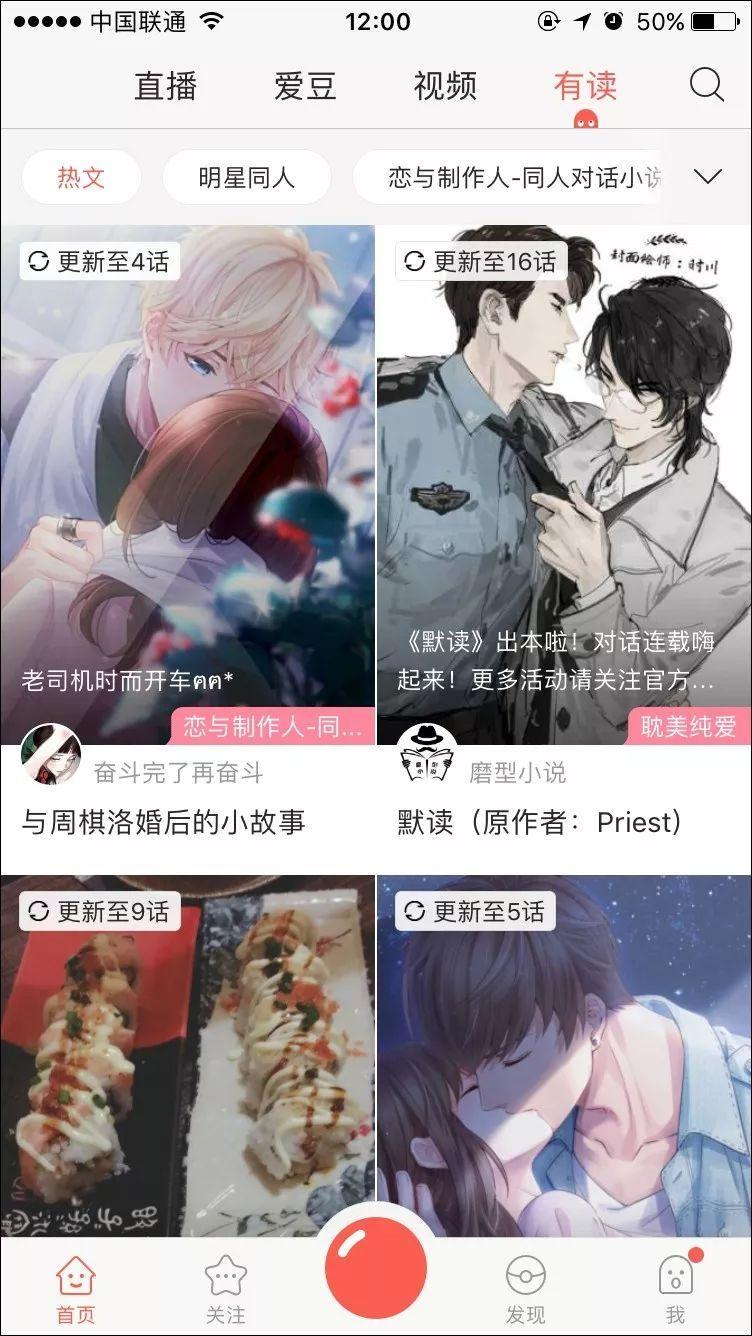 目前,在KilaKila的APP上,除了直播內(nèi)容之外,還有“視頻”和“有讀”兩個欄目。“視頻”下的內(nèi)容涵蓋了動漫、游戲、古風(fēng)、影視等類型,“有讀”下的內(nèi)容則是對話體小說,既有二次元寫手創(chuàng)作的,也有用戶自發(fā)創(chuàng)作及上傳的。