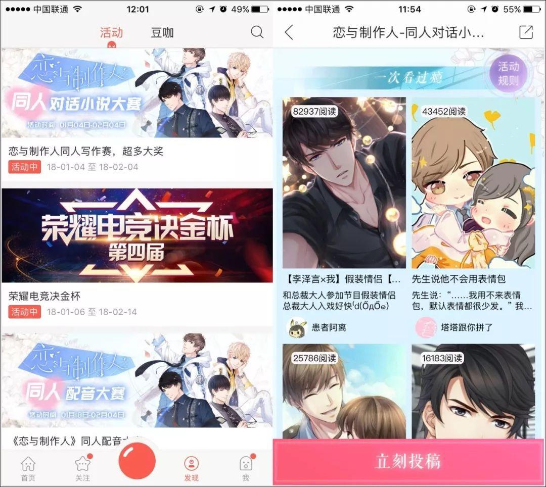 例如,最近KilaKila將觸角伸向了大熱的手游——《戀與制作人》,與其合作推出同人對話小說大賽、游戲配音大賽以及游戲主題的CV直播等一系列活動。