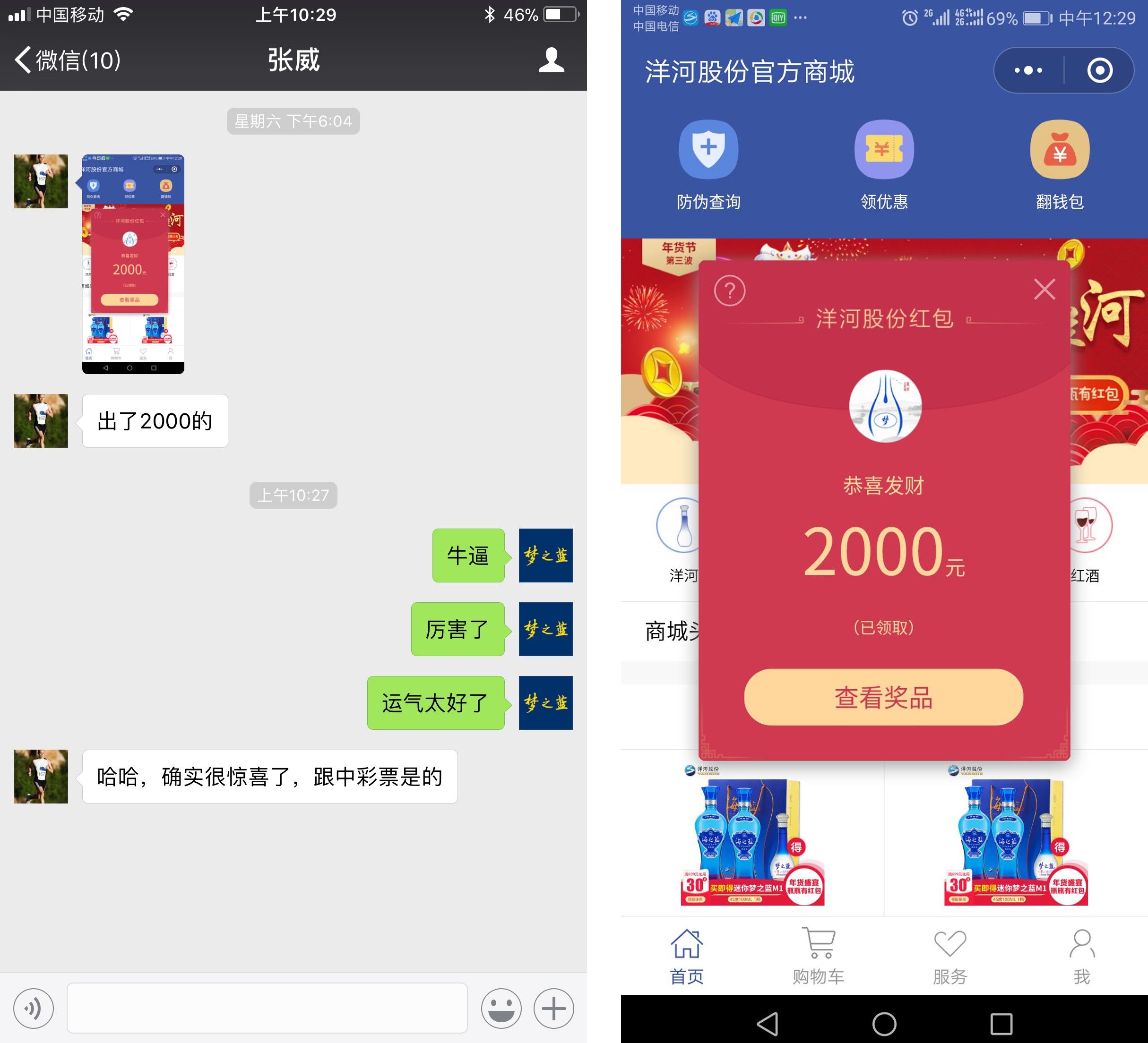 據(jù)廠家提供的信息,如此大力度的促銷活動,平均地算下來每箱海之藍(lán)有30元紅包、天之藍(lán)有60元的紅包呢,幾乎每天都有運(yùn)氣爆棚的小伙伴來炫耀:他中了2000元的大紅包!