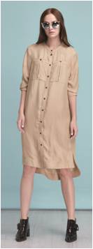 同樣是軍裝中得到靈感,選材上的細(xì)小變化,打造出完全不同的女性氣質(zhì)。純粹輕盈的材質(zhì),配合極簡(jiǎn)的設(shè)計(jì)手法,把軍裝誘惑演繹為蓋袋拼接式one piece連衣裙,簡(jiǎn)潔干練。加長(zhǎng)大擺尾的襯衣群,知性中盡顯自信。同色系的色調(diào),演繹出極簡(jiǎn)與純粹的碰撞,帶來一場(chǎng)簡(jiǎn)約而富有張力盛宴。