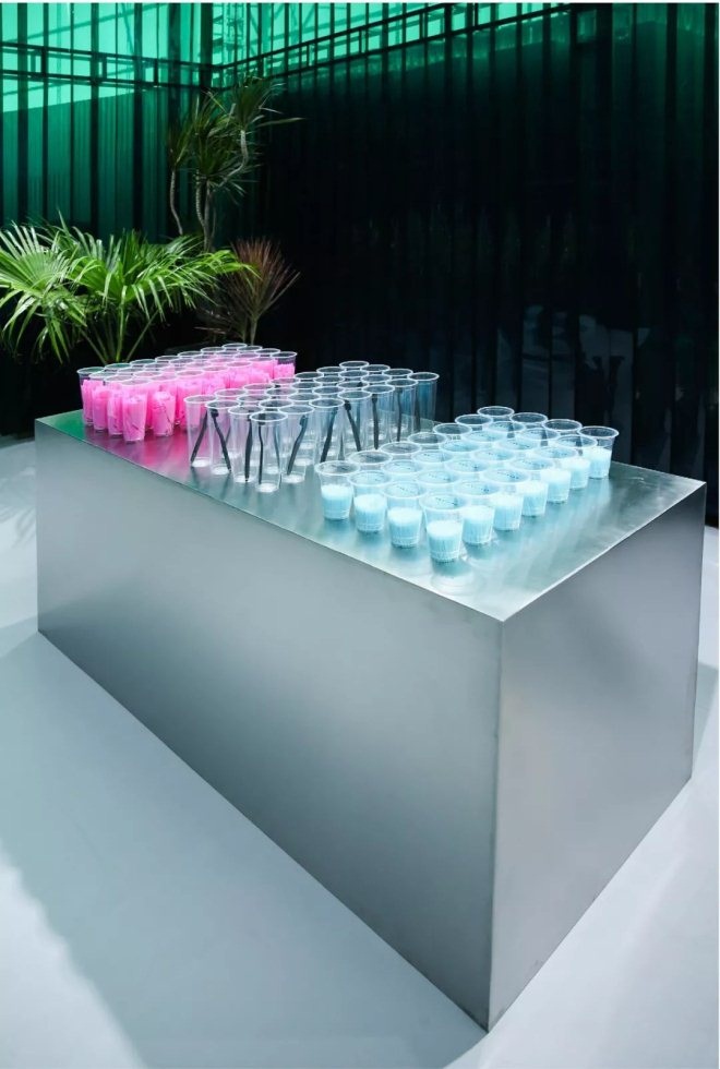 而大量奇特的“藝術(shù)品”也被視為是本次活動的亮點之一,如比被裝在奶茶杯里的一次性用品;根本不能食用的奶油拉花;實際上并沒裝任何飲料的可口可樂易拉罐……這些都是藝術(shù)家徐震在實現(xiàn)“藝術(shù)走向生活”上做出的嘗試。