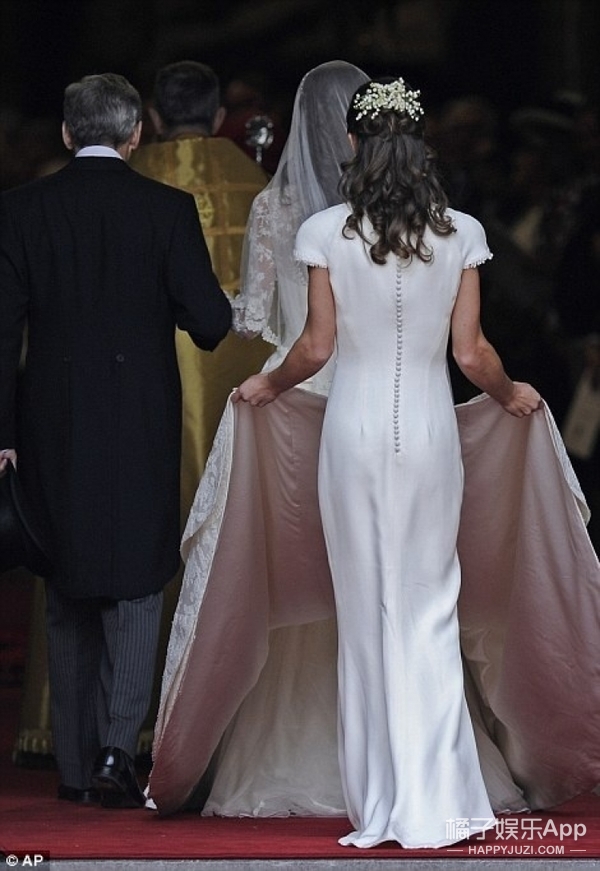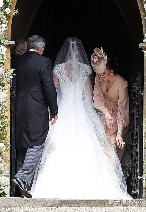在妹妹的婚禮上,凱特王妃跟在妹妹身后整理婚紗,這一幕和凱特王妃婚禮的時候很相似,姐妹情深呢~