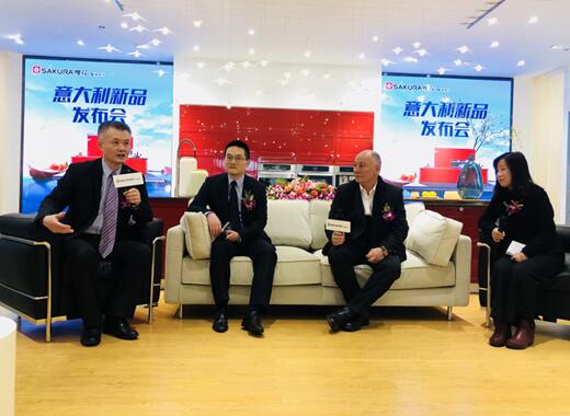 \u00A0\u00A0\u00A0\u00A0SAKURA櫻花總經(jīng)理張永政(左二)、整廚副總沈銘中(左一)、意大利設(shè)計(jì)師(右二)接受媒體采訪