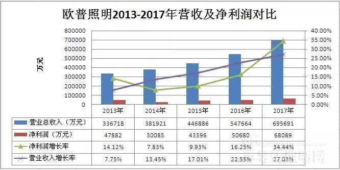 歐普照明2013-2017年?duì)I收及凈利潤(rùn)對(duì)比