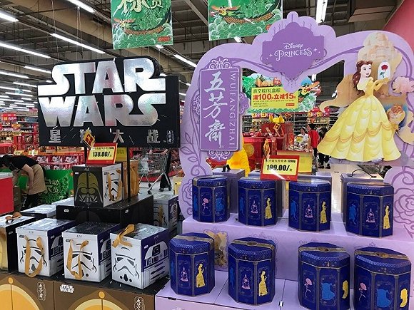 同時(shí),與IP合作成為了新的營(yíng)銷方式。新包裝運(yùn)用了迪士尼的星球大戰(zhàn)、美女與野獸、米奇,同道大叔甚至是A站。去年中秋的月餅禮盒,和A站合作“AC五芳”月餅還在包裝上用了AR技術(shù)來互動(dòng)。
