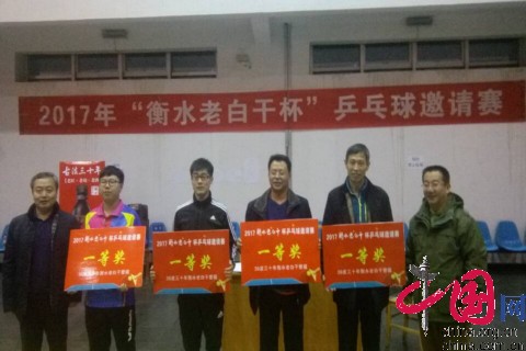 中國網(wǎng)訊 \u00A02017“衡水老白干”杯乒乓球邀請賽于12月17日在河北衡水老白干釀酒集團文體中心舉行,經(jīng)過激烈角逐,衡水學(xué)院教工隊在21支參賽隊伍中脫穎而出,勇奪冠軍獎杯。