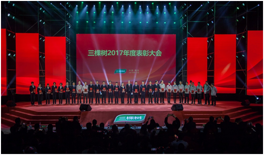 除年度報(bào)告外,此次年會(huì)內(nèi)容豐富,亮點(diǎn)紛呈。優(yōu)秀員工經(jīng)驗(yàn)分享會(huì),經(jīng)驗(yàn)分享,助力發(fā)展,向優(yōu)秀學(xué)習(xí),讓優(yōu)秀成為更優(yōu)秀;第十三屆企業(yè)文化知識(shí)競(jìng)賽,要圍繞三棵樹(shù)新文化體系內(nèi)容展開(kāi),通過(guò)知識(shí)性、競(jìng)賽性、趣味性為一體的學(xué)習(xí)形式,以賽促學(xué)、以學(xué)促用,進(jìn)一步激發(fā)大家了的學(xué)習(xí)的熱情;優(yōu)秀表彰大會(huì),頒發(fā)了個(gè)人獎(jiǎng)和團(tuán)隊(duì)獎(jiǎng)兩大類(lèi)共計(jì)25個(gè)獎(jiǎng)項(xiàng),相比去年新增了技術(shù)創(chuàng)新獎(jiǎng)、優(yōu)秀工匠獎(jiǎng)、董事長(zhǎng)特別貢獻(xiàn)獎(jiǎng)、十五周年貢獻(xiàn)獎(jiǎng)等。備受矚目的董事長(zhǎng)特別貢獻(xiàn)獎(jiǎng)由江蘇省區(qū)經(jīng)理何宗奎獲得,2017年,他帶領(lǐng)團(tuán)隊(duì)再次創(chuàng)造銷(xiāo)售奇跡,以破億的業(yè)績(jī),傲居銷(xiāo)量榜首,斬獲奧迪A8轎車(chē)一臺(tái)。大會(huì)上,洪杰董事長(zhǎng)還為30多名見(jiàn)證公司成長(zhǎng)老員工頒發(fā)十五周年貢獻(xiàn)獎(jiǎng),成就見(jiàn)證三棵樹(shù)十五年共創(chuàng)共享的一段佳話(huà)。