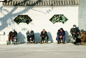 寒冷的天氣里,老人們靠著墻根,在暖陽(yáng)下一邊曬太陽(yáng),一邊拉家常。董俊峰/攝