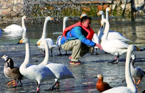 動(dòng)物園里,飼養(yǎng)員對(duì)待小動(dòng)物愛護(hù)有加,問(wèn)寒問(wèn)暖,還不時(shí)地摸摸白天鵝。文偉奇/攝